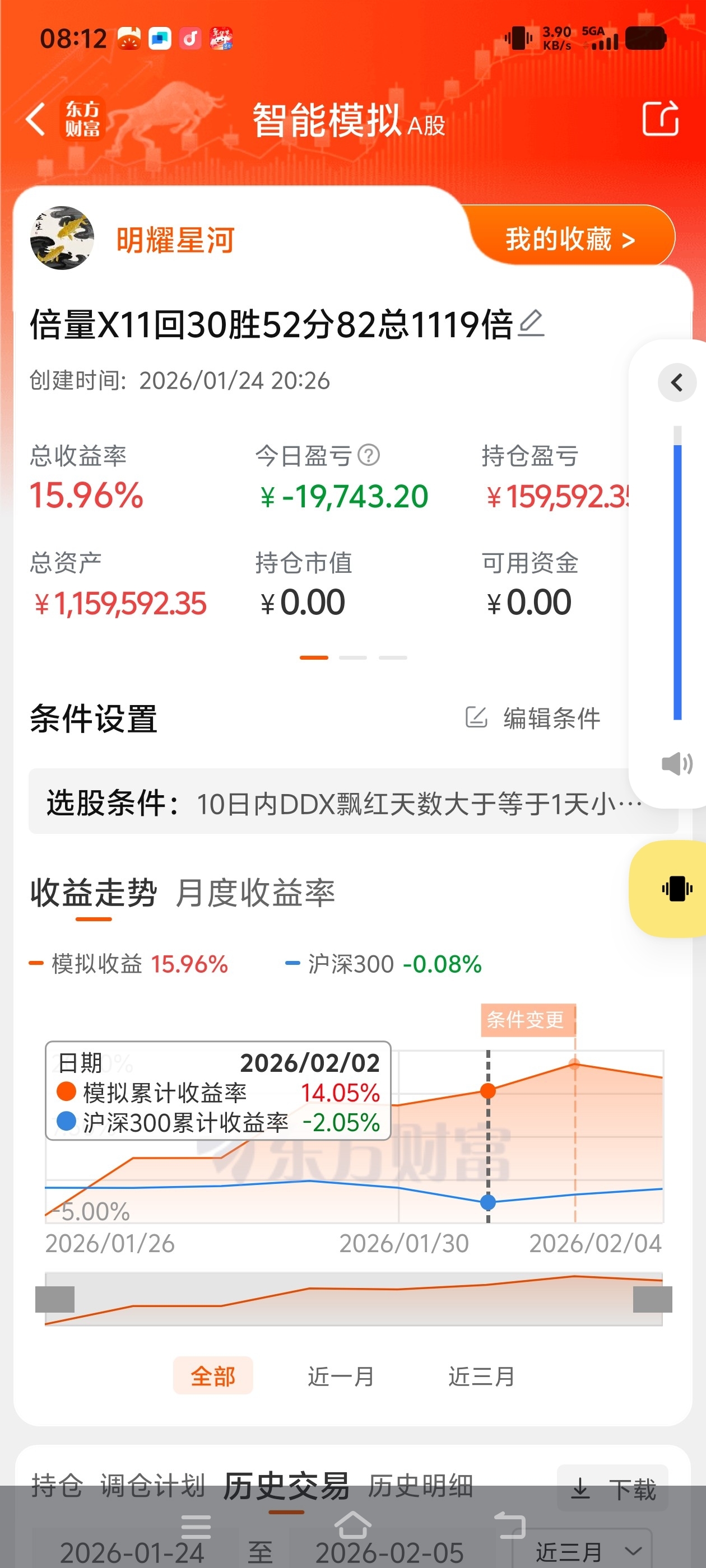 今天开始,每天进行验证。策略一:建立日期1月24日。经典战绩:无,但是建立以来没