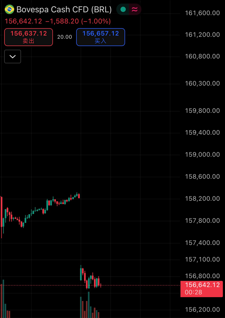 $巴西BOVESPA(QQZS|BVSP)$ 实时是低开的开端开盘,东财延时