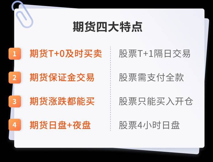 外盘期货一般采用保证金交易制度,$恒生指数(QQZS|HSI)$ 保证金比例通常在 5%-20%之间,$COMEX黄金(COMEX|GC00Y)$ 杠杆效应较大。$纳斯达克(QQZS|NDX)$