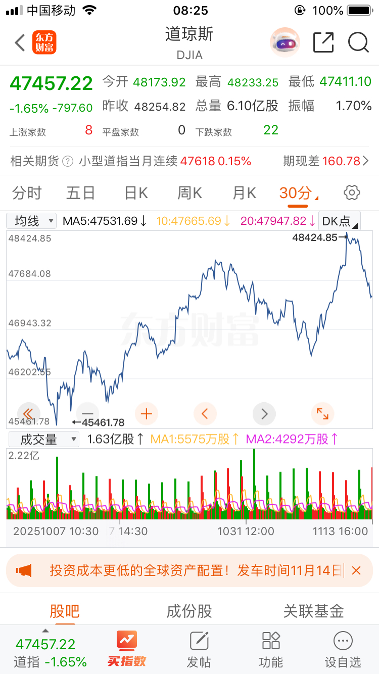 $道琼斯(QQZS|DJIA)$ 隔夜美股指数创新高后暴跌,权重指数道琼斯最后一段反抽诱多,向上没打出空间,没有为调整做好铺垫,意味着最后一波为反抽性质。既然是反抽,那么向下的空间自然是很大的,不排除快速跌破位的系统性恐慌急跌。看这趋势形态与大A有着相似之处,所以,我们有必要打起精神,计划好风控点。