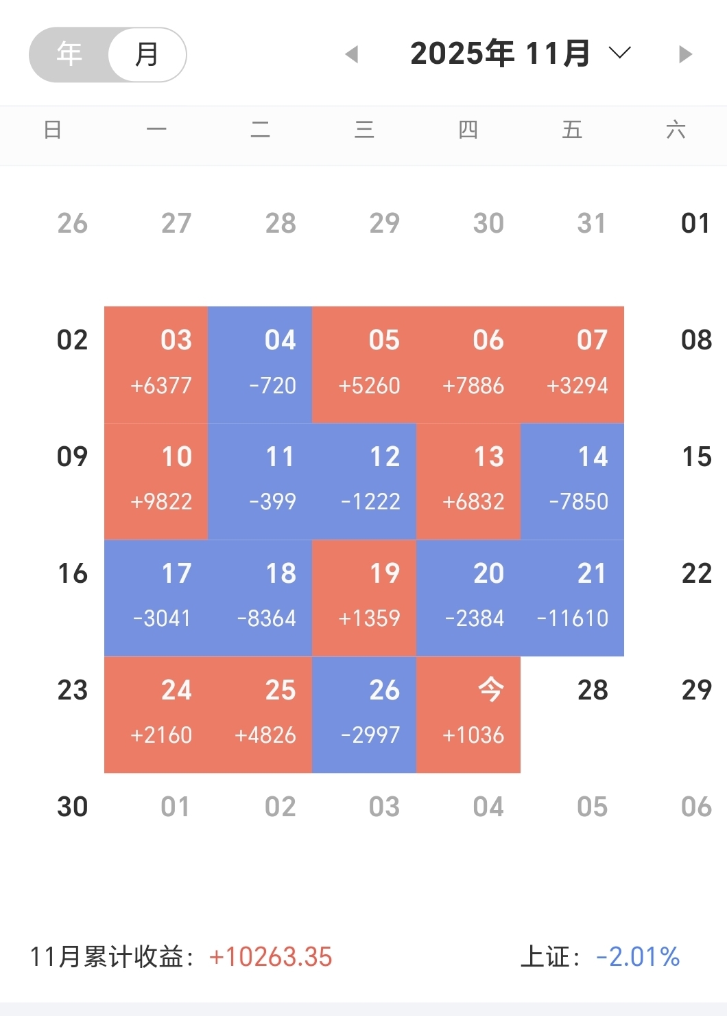 今天盈利1036我在大a开超市目前一共持有105只个股目前总仓位百分之94进入市