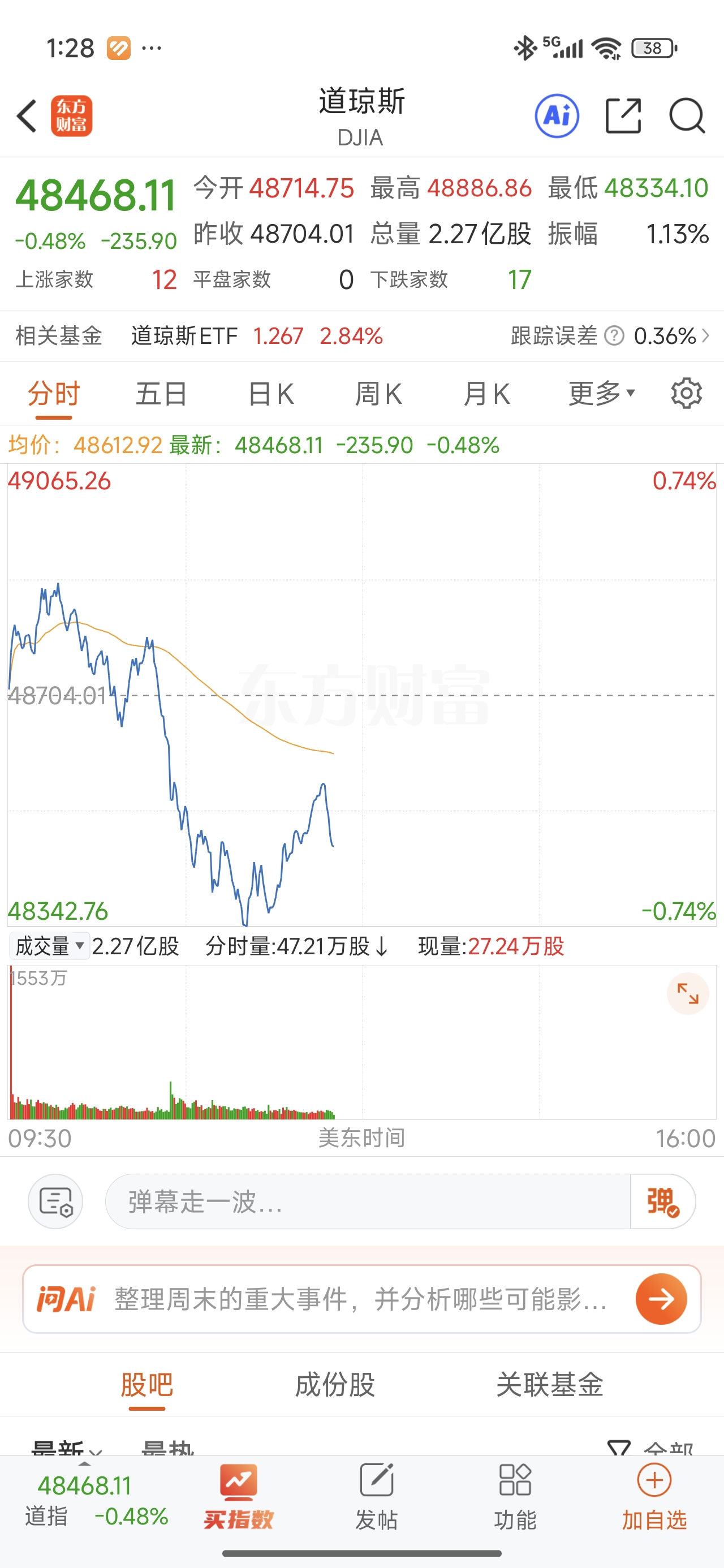 $道琼斯(QQZS|DJIA)$ 盘语到顶了