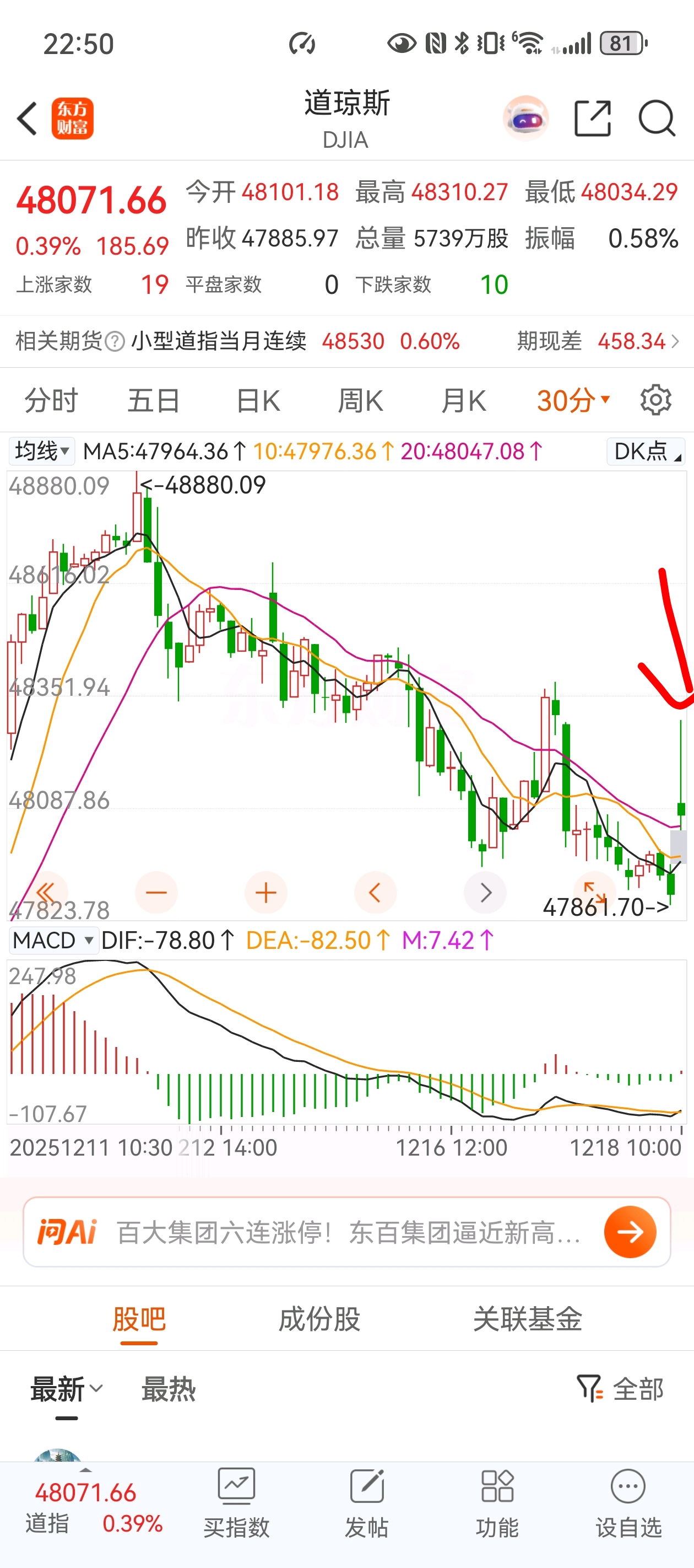 $道琼斯(QQZS|DJIA)$ 空军实力强,看后面交易情况,这一根不修复有点悬