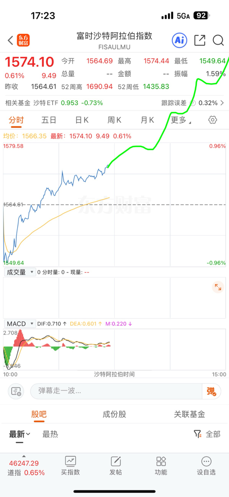 $富时沙特阿拉伯指数(QQZS|FISAULMU)$ 线已经画好了