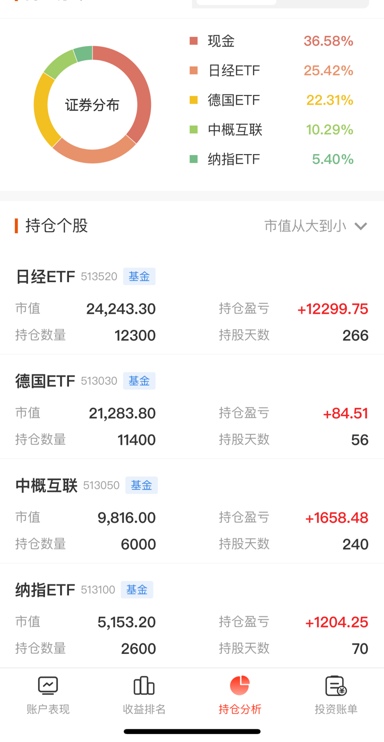 $德国DAX30(QQZS|GDAXI)$ 定投第 54天,今日买入德国ETF600股,卖出纳指ETF600股,卖出日经ETF1200,今日盈亏-22元,今年累计盈亏17013元,种一棵树最好的时间是十年前,其次是现在~(实盘,原创)只记录分享,不做推荐!盈亏自负!#炒股日记#