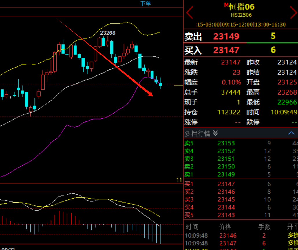 恒指23250反手进场了空单的盆友,现在到了短支撑位23150附近了,建议止盈出局,获利100个点,利润5000港币/手。