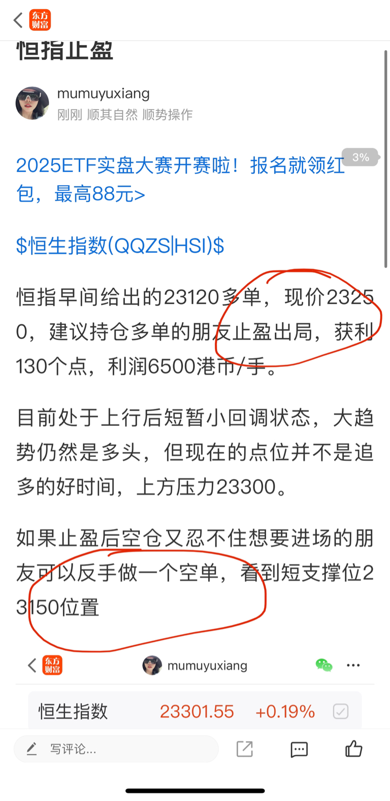 恒指23250反手进场了空单的盆友,现在到了短支撑位23150附近了,建议止盈出