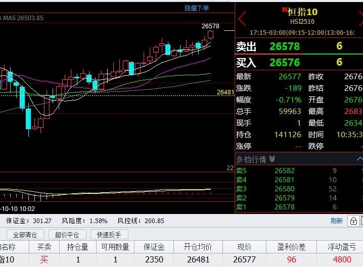 恒指26481多单,开始抓住1手4800港币