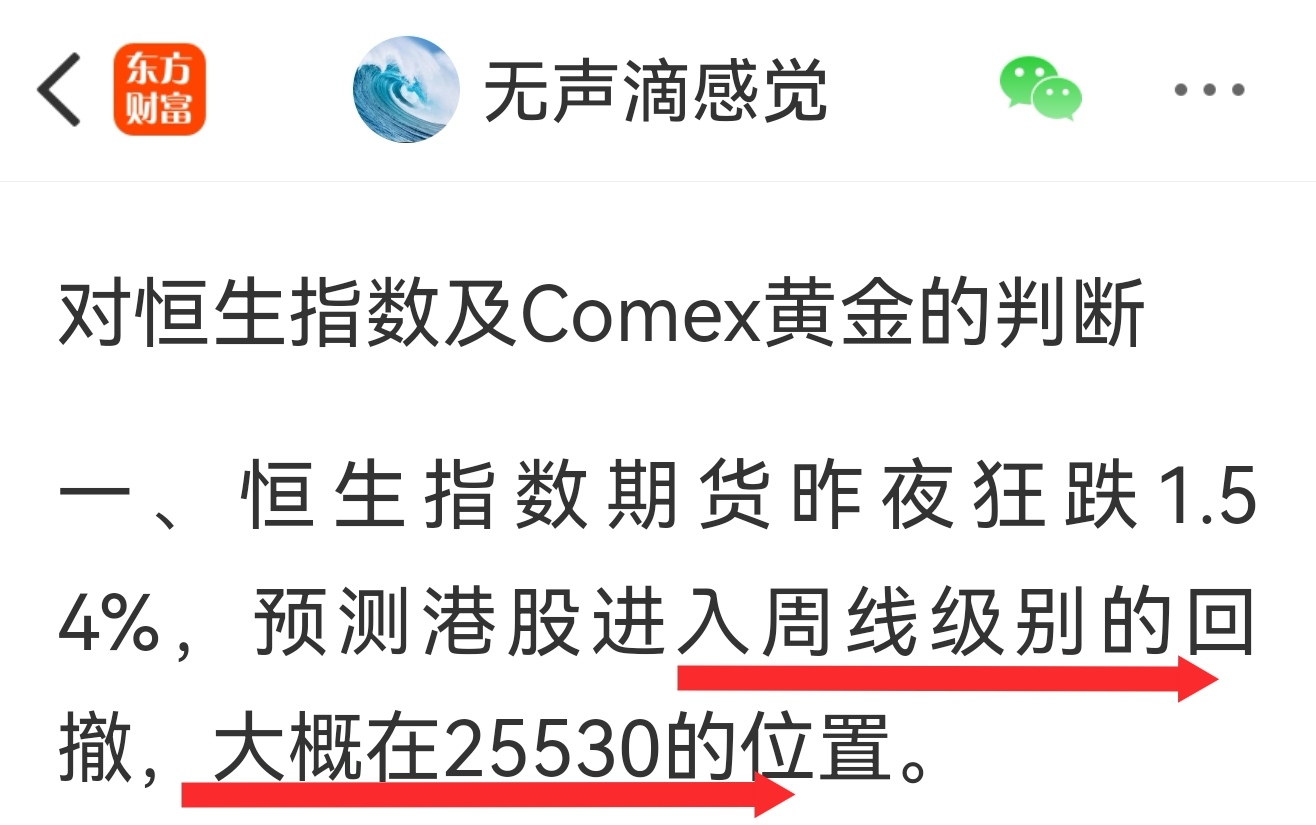 恒生指数最低到25336,已到达三日前的预测点位,目前没有止跌。