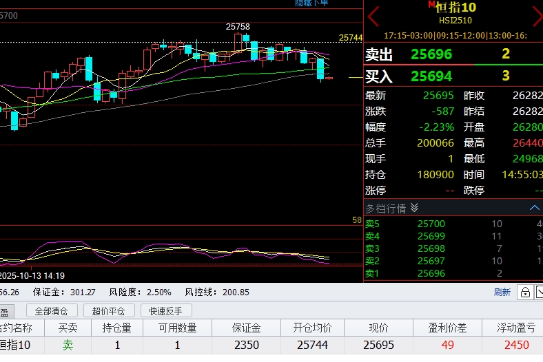 恒指25744空单,开始抓住1手2450港币=2247人民币!以稳健为主,跟上朋