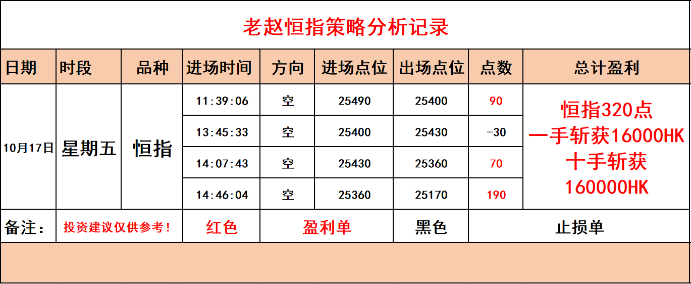 【老赵恒指】10月17日,白盘实战统计记录!斩获320点完美收官
