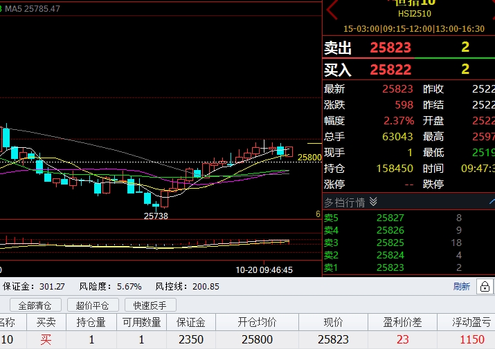 $恒生指数(QQZS|HSI)$ 恒指25800多单,开始抓住1手1150港币
