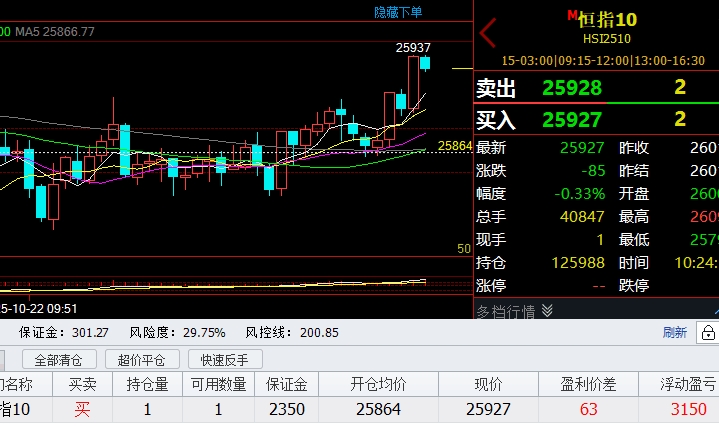 $恒生指数(QQZS|HSI)$ 恒指25800多单,开始抓住1手3150港币