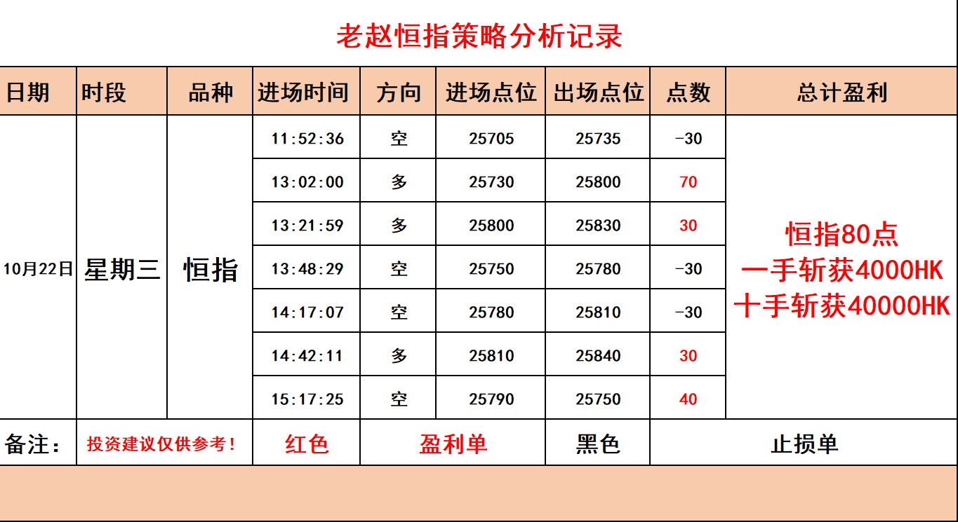 【老赵恒指】10月22日恒指白盘指导记录斩获80点!