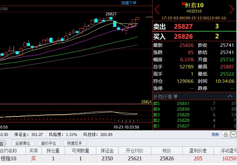 $恒生指数(QQZS|HSI)$ 恒指25621多单,1手10250港币