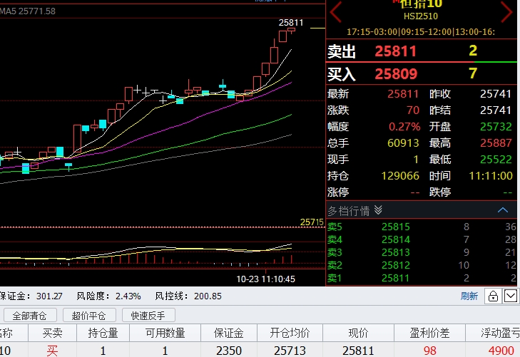 恒指25713多单,开始抓住1手4900港