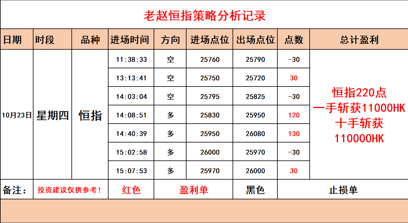 【老赵恒指】10月23日恒指白盘操作指南,斩获220点!