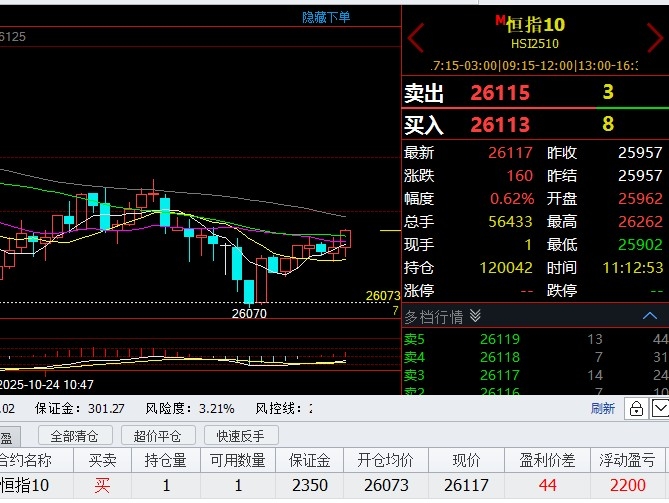 $恒生指数(QQZS|HSI)$ 恒指26073多单,1手2200港币