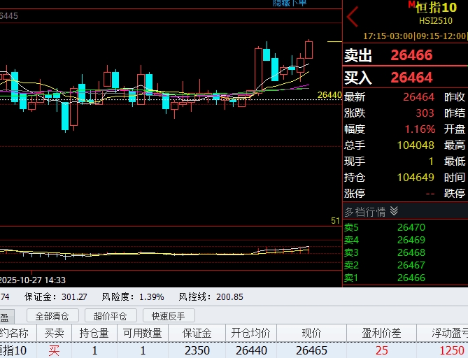 $恒生指数(QQZS|HSI)$ 恒指26440多单,开始抓住1手1250港币