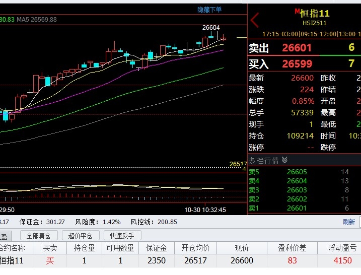 恒指26517多单,1手4150港币