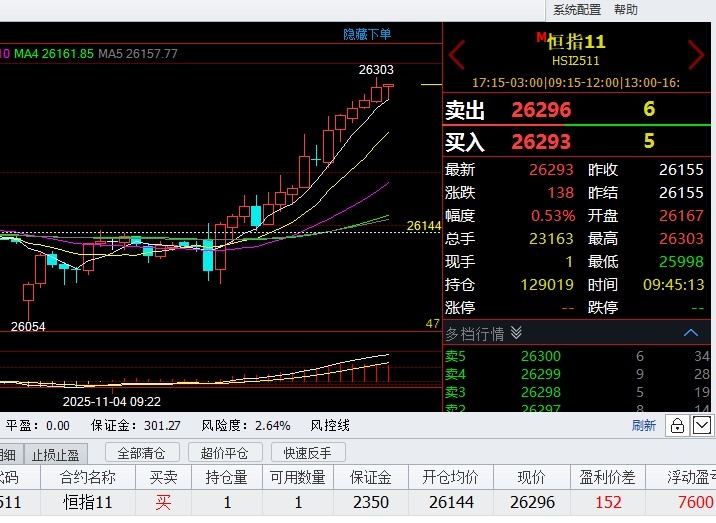 $恒生指数(QQZS|HSI)$ 恒指26144多单,1手7600港币