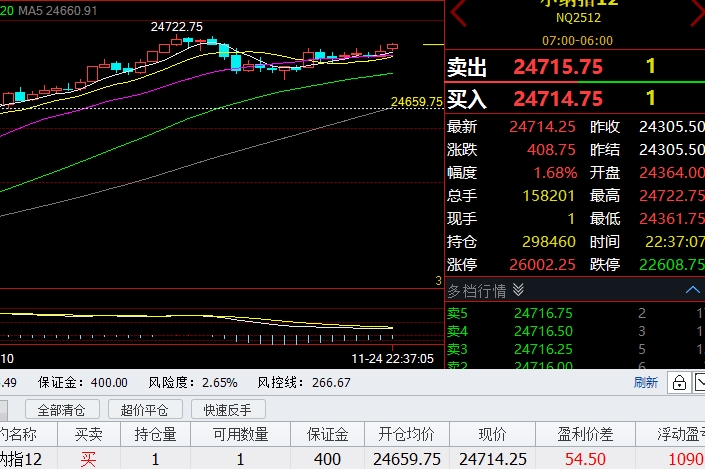 纳指24659多单,开始抓住1手1090美金