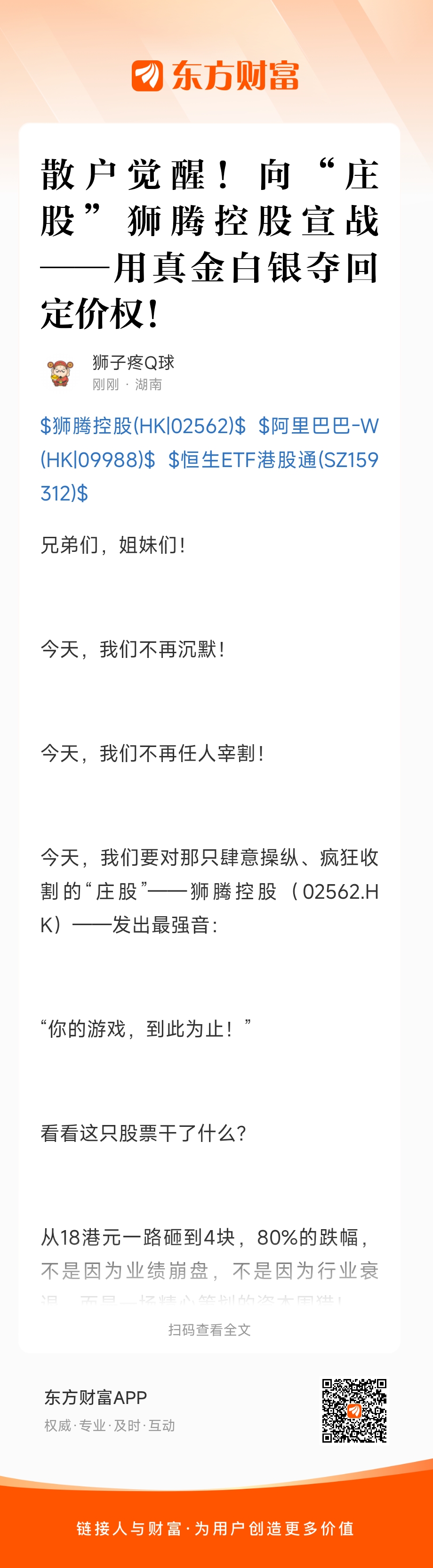 今天,我们要对那只肆意操纵、疯狂收割的“庄股”——狮腾控股(02562.HK)——发出最强音: