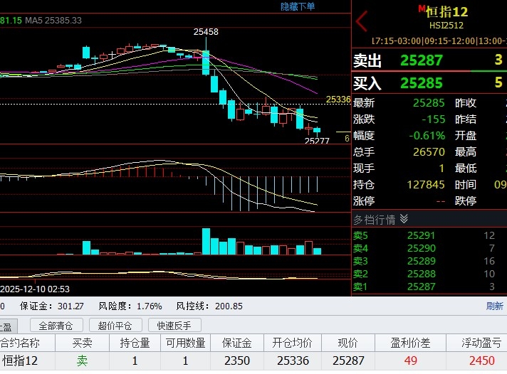 $恒生指数(QQZS|HSI)$ 恒指25336空单,1手盈利2450