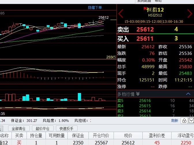 $恒生指数(QQZS|HSI)$ 恒指25567多单,1手盈利2250港币分析如同排兵布阵,交易就是战斗,思路清晰操作起来就会得心应手!智慧创造财简单而又温馨的生活才叫做幸福