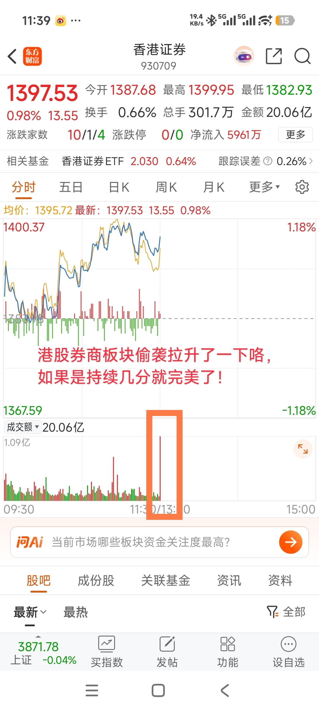 港股券商板块偷袭拉升了一下咯,如果是持续几分就完美了!