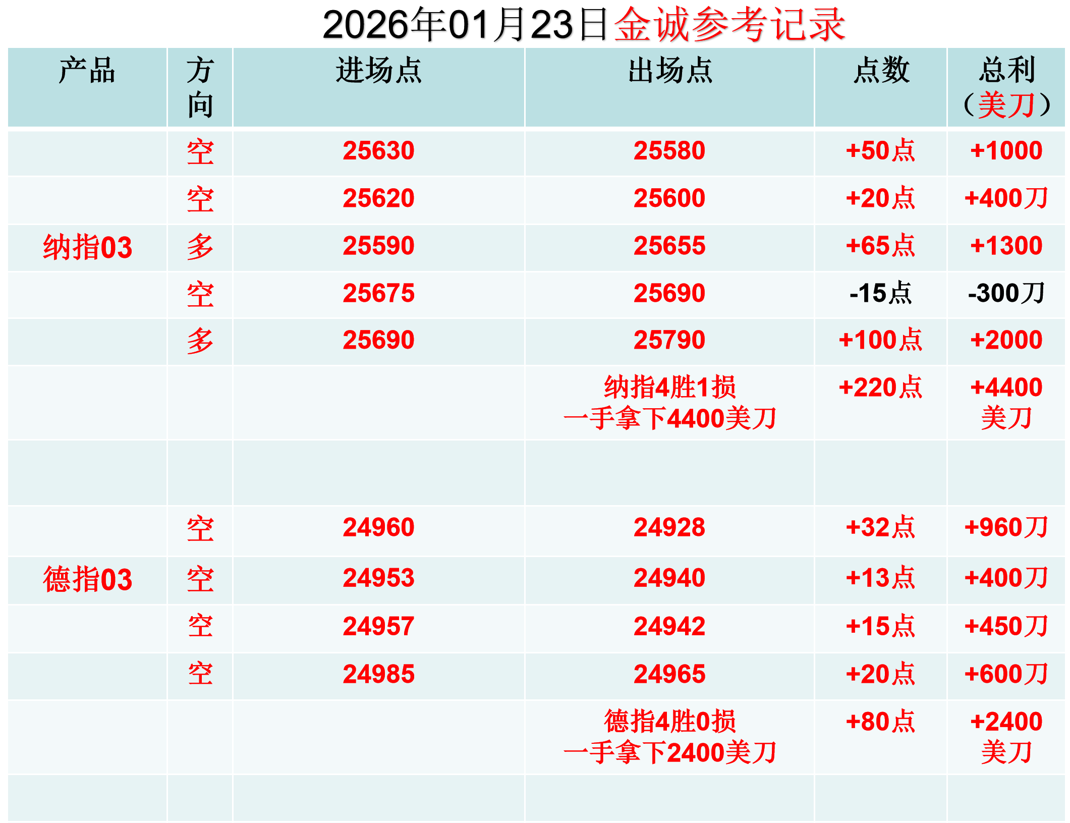 [金诚]:下午好1月26日德指-恒指参考连载!本贴实时更新参考!附带昨日统计