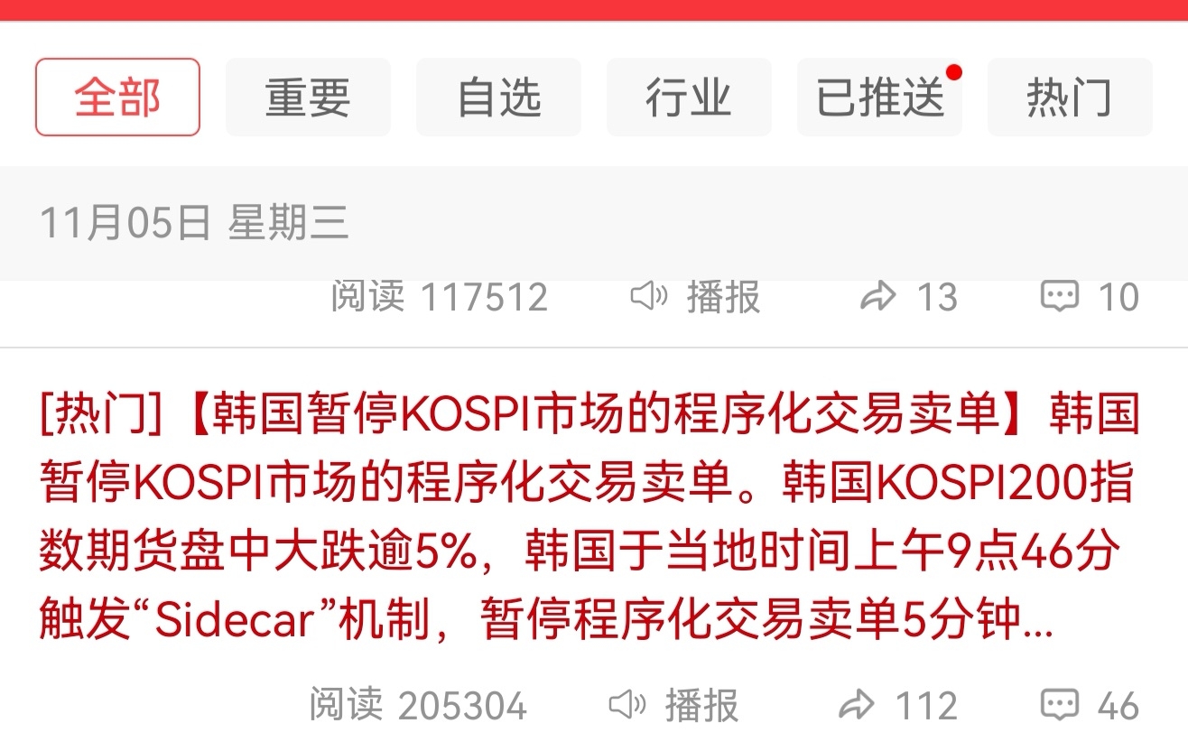 【韩国暂停KOSPI市场的程序化交易卖单】
