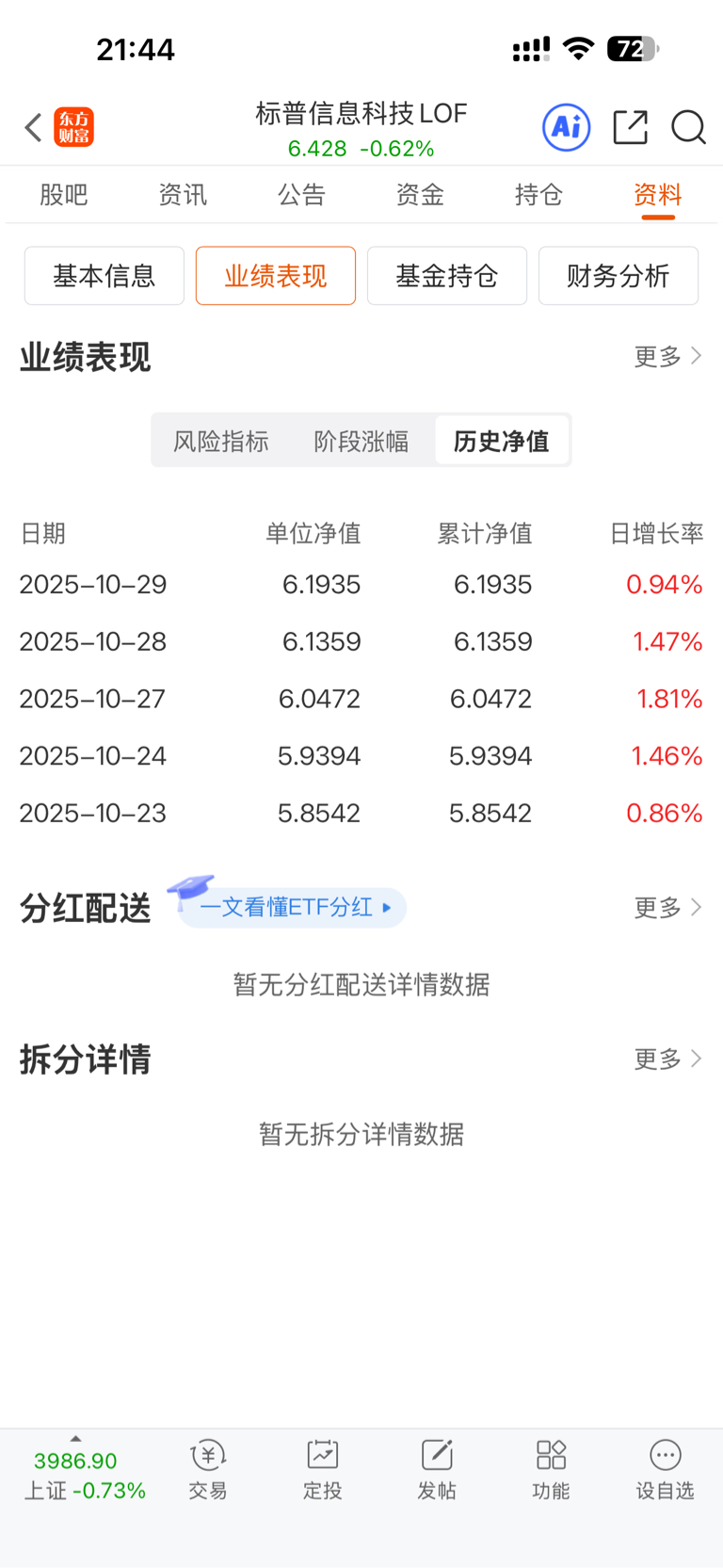 【20251031】今天标科最新净值约6.1174,开盘前溢价率约5.08%