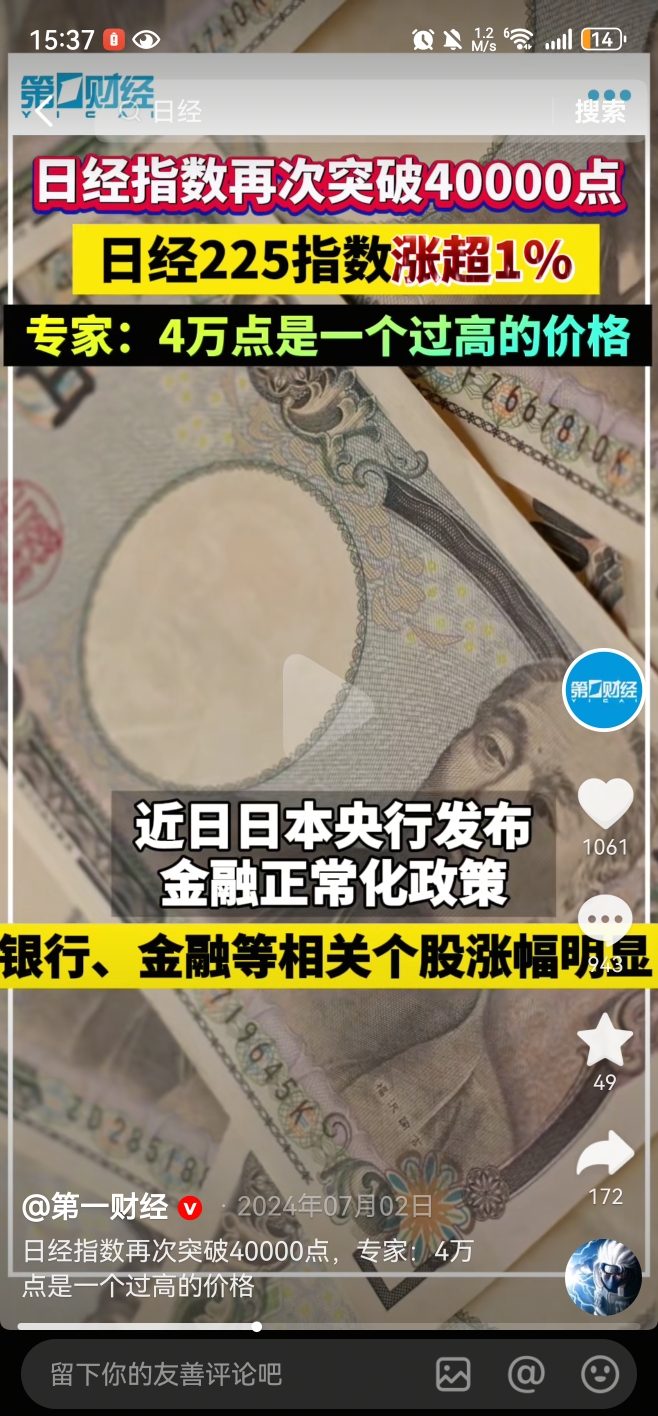 $日经225(QQZS|N225)$ 第一财政报道的!