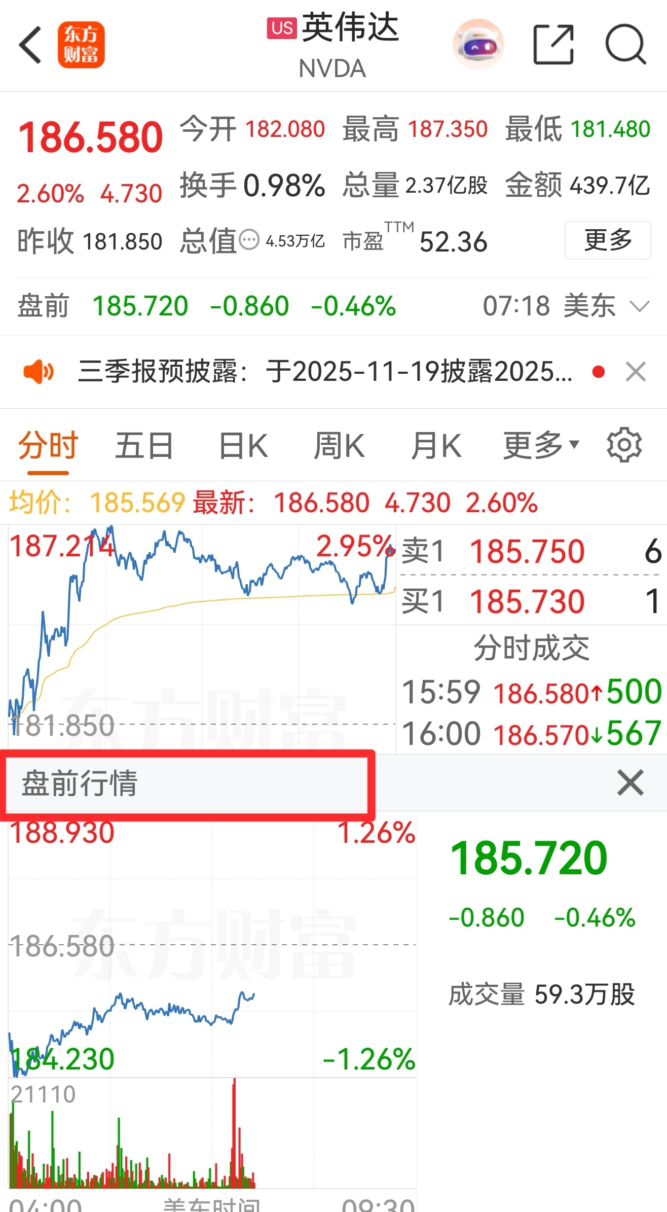 美股盘前急跌,英伟达一度跌1.26%,苹果1.19%。