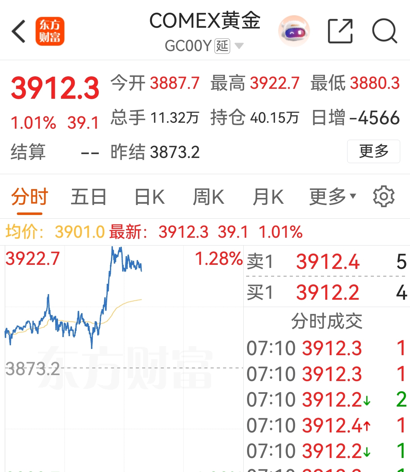 与其同时,Comex黄金直线拉升1.29%,最高探到每盎司3922.7美元,照这强劲走势,国外不少分析师指出,Comex黄金突破4000美元或指日可待。