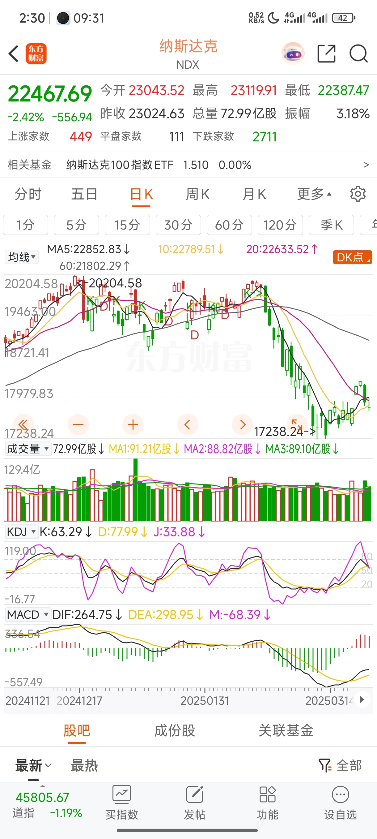 $纳斯达克(QQZS|NDX)$ 今天和2024年12月18日差不多。想一次性跌下去的不可能,肯定是反复震荡几个月,来回拉升走低。最后才会来一次大跌,之后再次暴涨。历史每次都是这样。