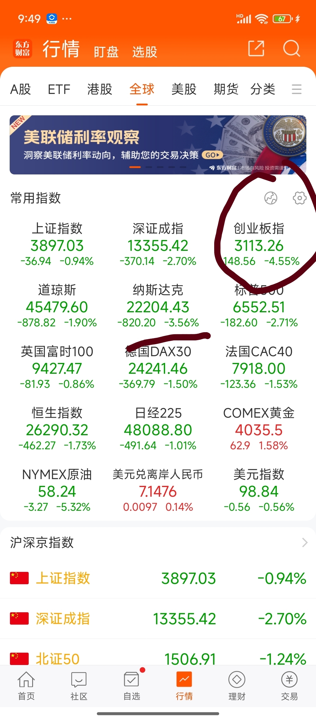 $纳斯达克(QQZS|NDX)$ 大a跌近5个点创业a50跌5.6个点也没见你们这么说呀。