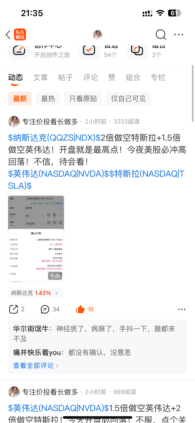 $纳斯达克(QQZS|NDX)$ 财姐又精准预判!大力做空!要吃肉了!哈哈!$英伟达(NASDAQ|NVDA)$ $特斯拉(NASDAQ|TSLA)$