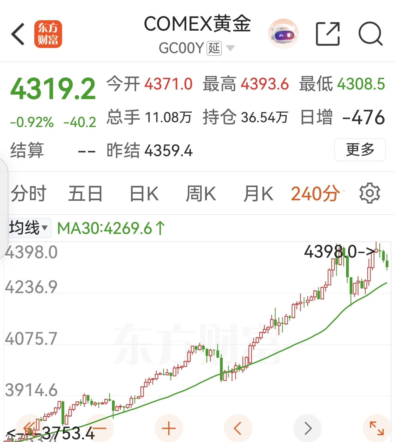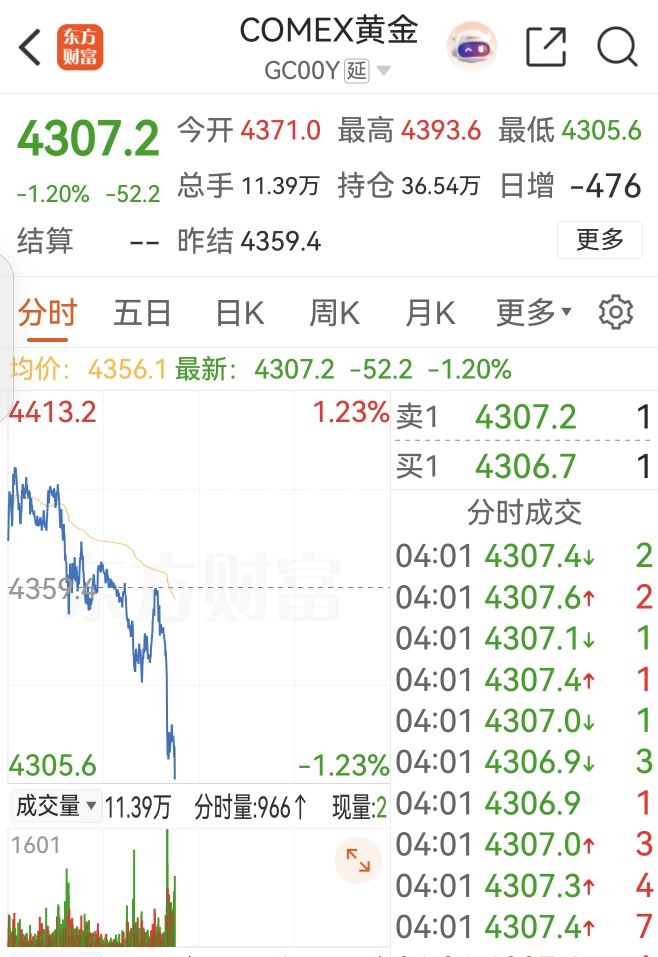 Comex黄金期货大跳水,