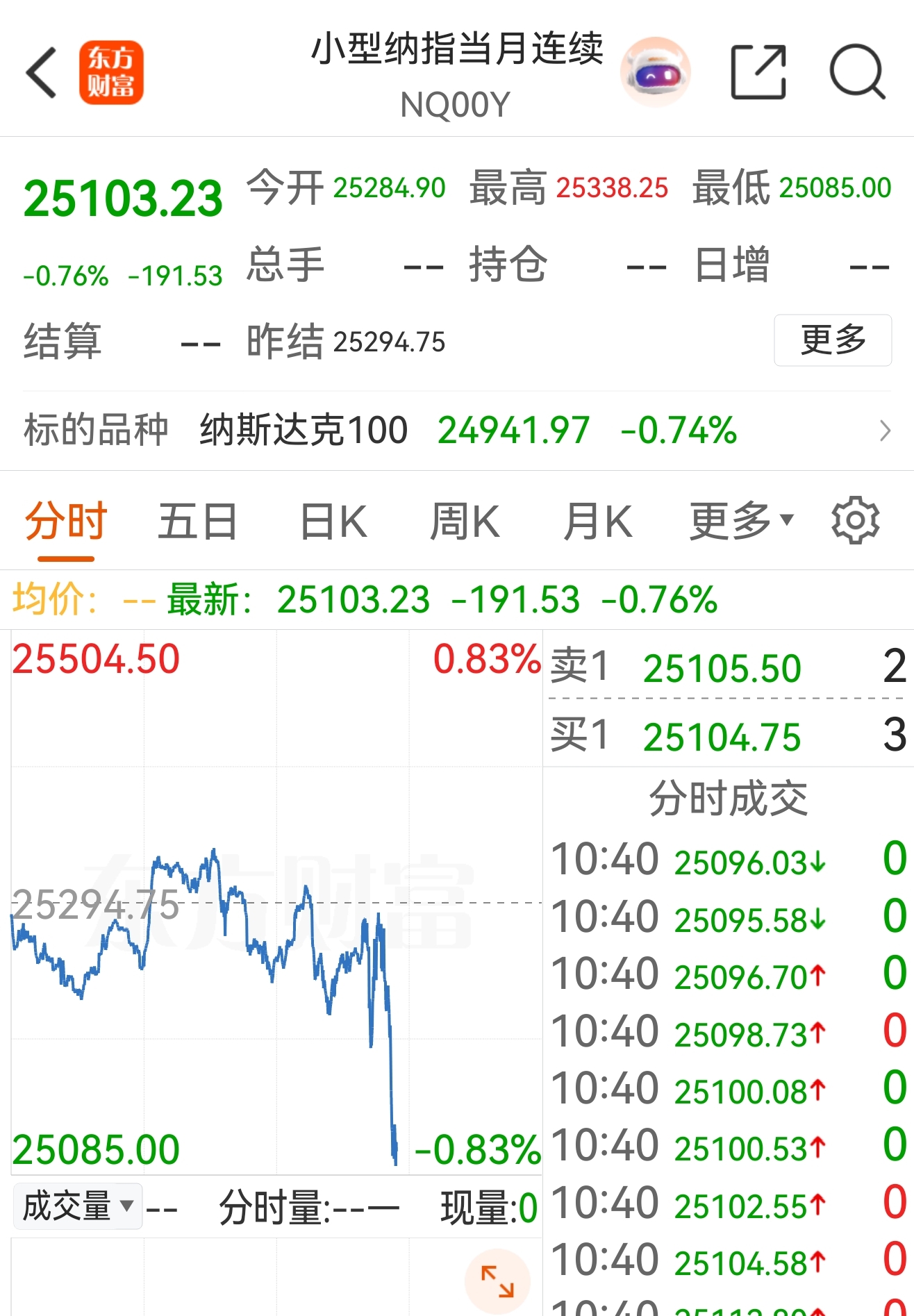 预测纳指期货一旦过或接近25394,指数会立即调头向下。