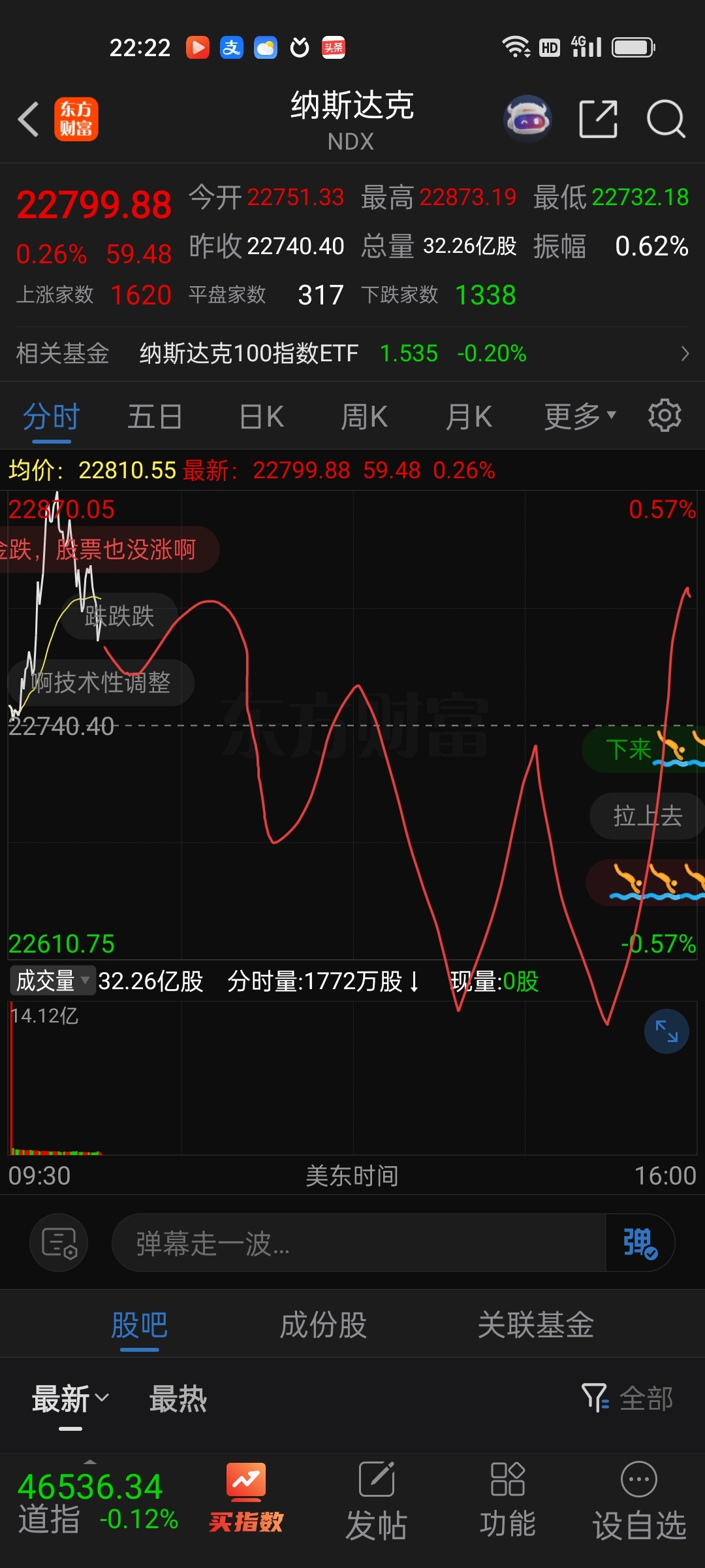 $纳斯达克(QQZS|NDX)$ 今天晚上走势预测