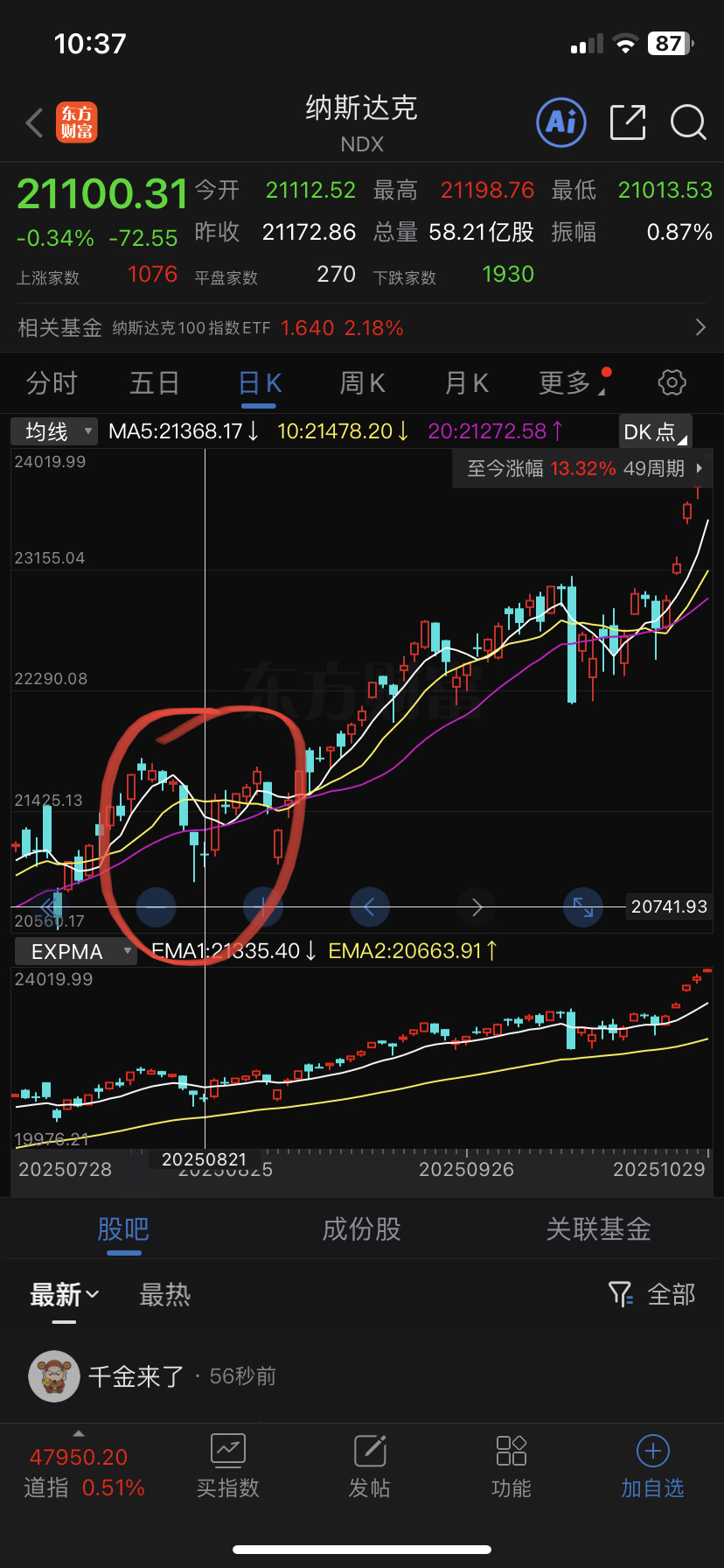 $纳斯达克(QQZS|NDX)$ 回头看看看A股是从这个时候拉的吧,当时好多唱空狗,结果人家现在2W4000了,老A还在割韭菜