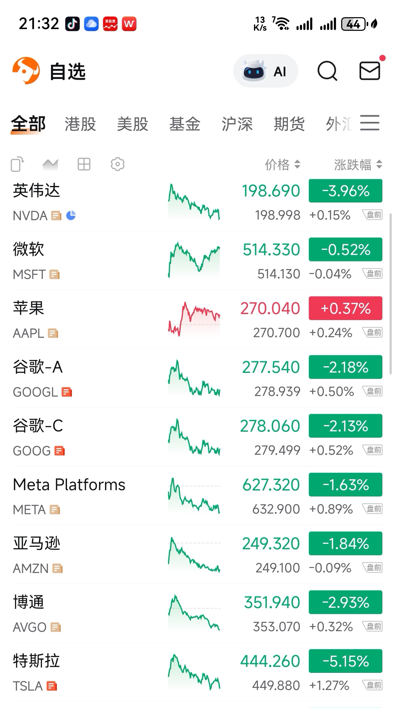 在今天晚上21点半之后,目前观察7朵金花+博通这些,在盘前表现已经有6个是涨的了