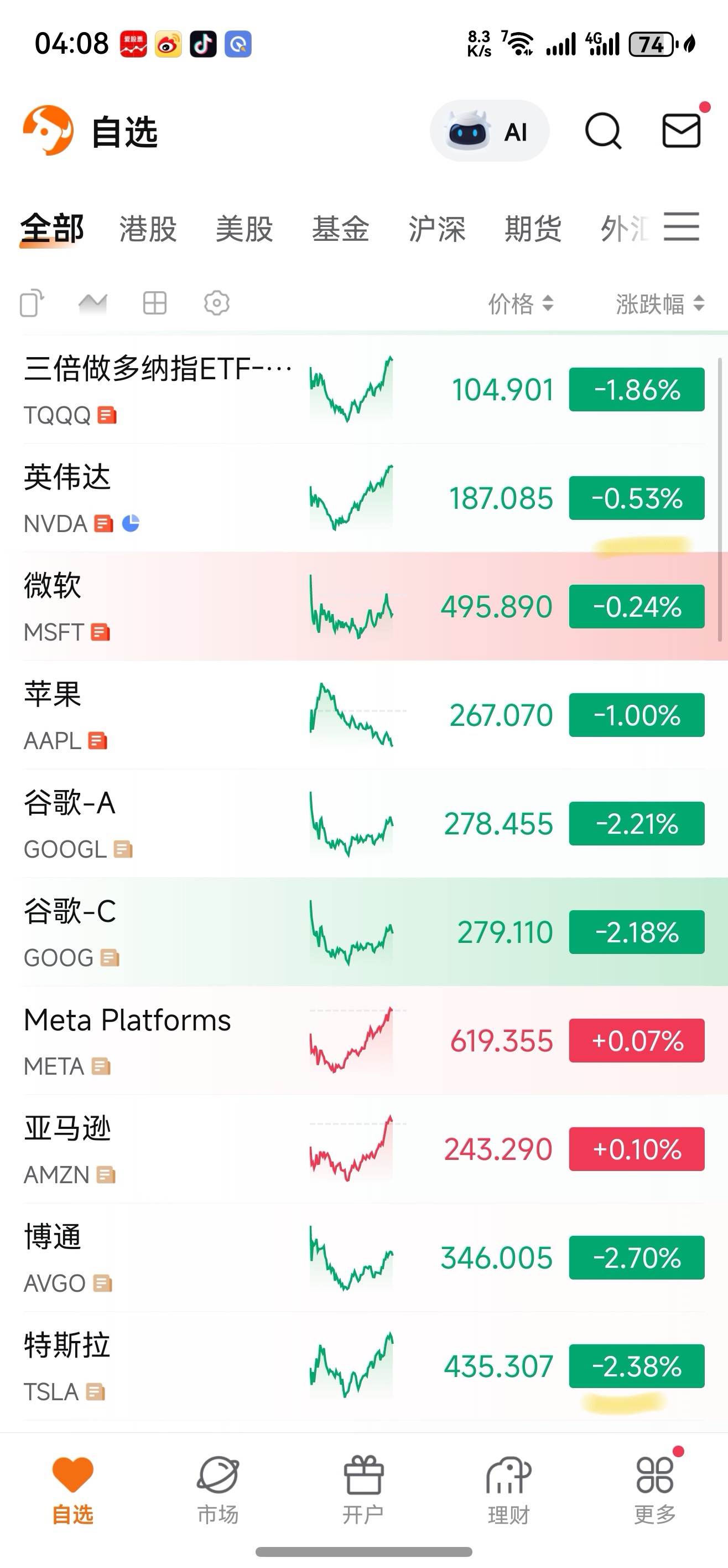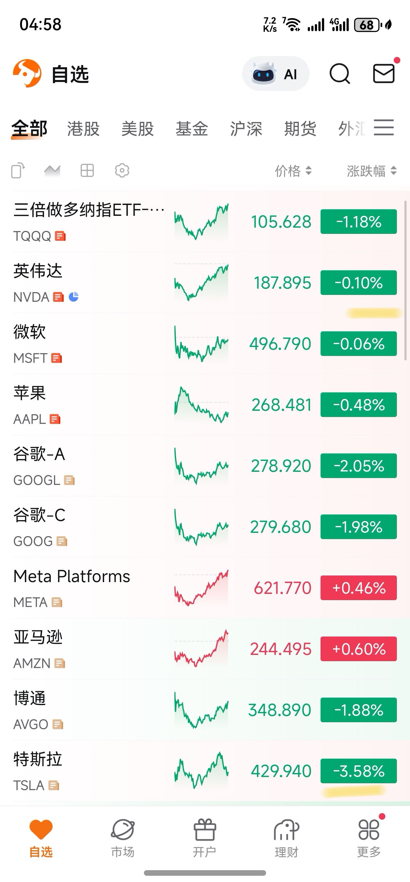 在今天凌晨五点之后,观察纳斯达克指数里的7朵金花中的英伟达,在尾盘与收盘已经陆续拉升翻红变涨了。