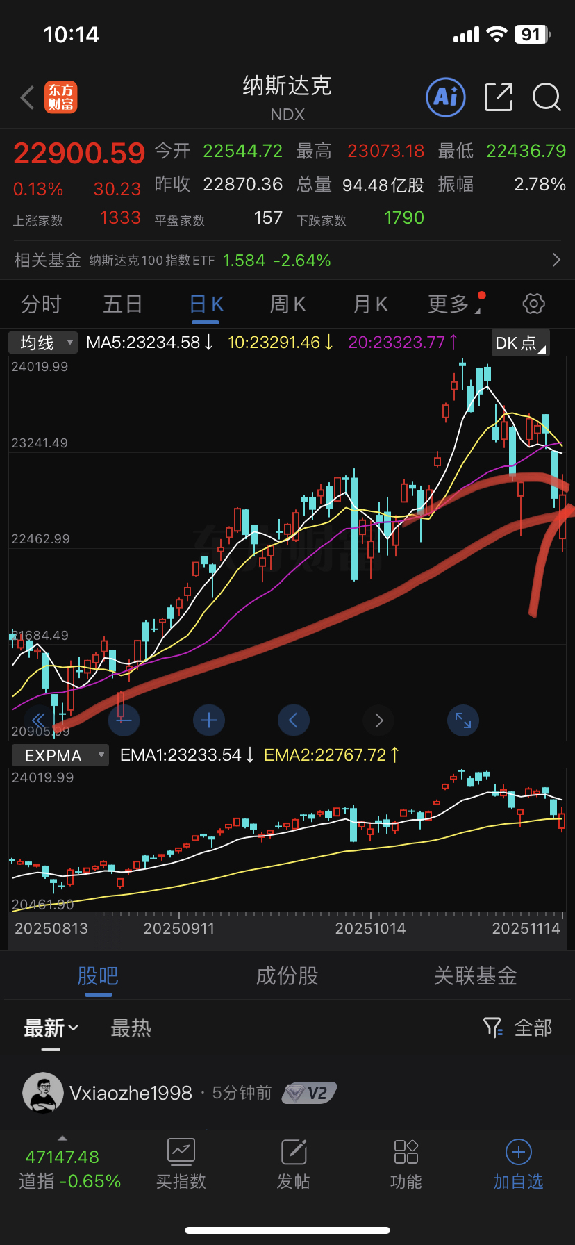 $纳斯达克(QQZS|NDX)$ 砸到30到45度之间,接着上