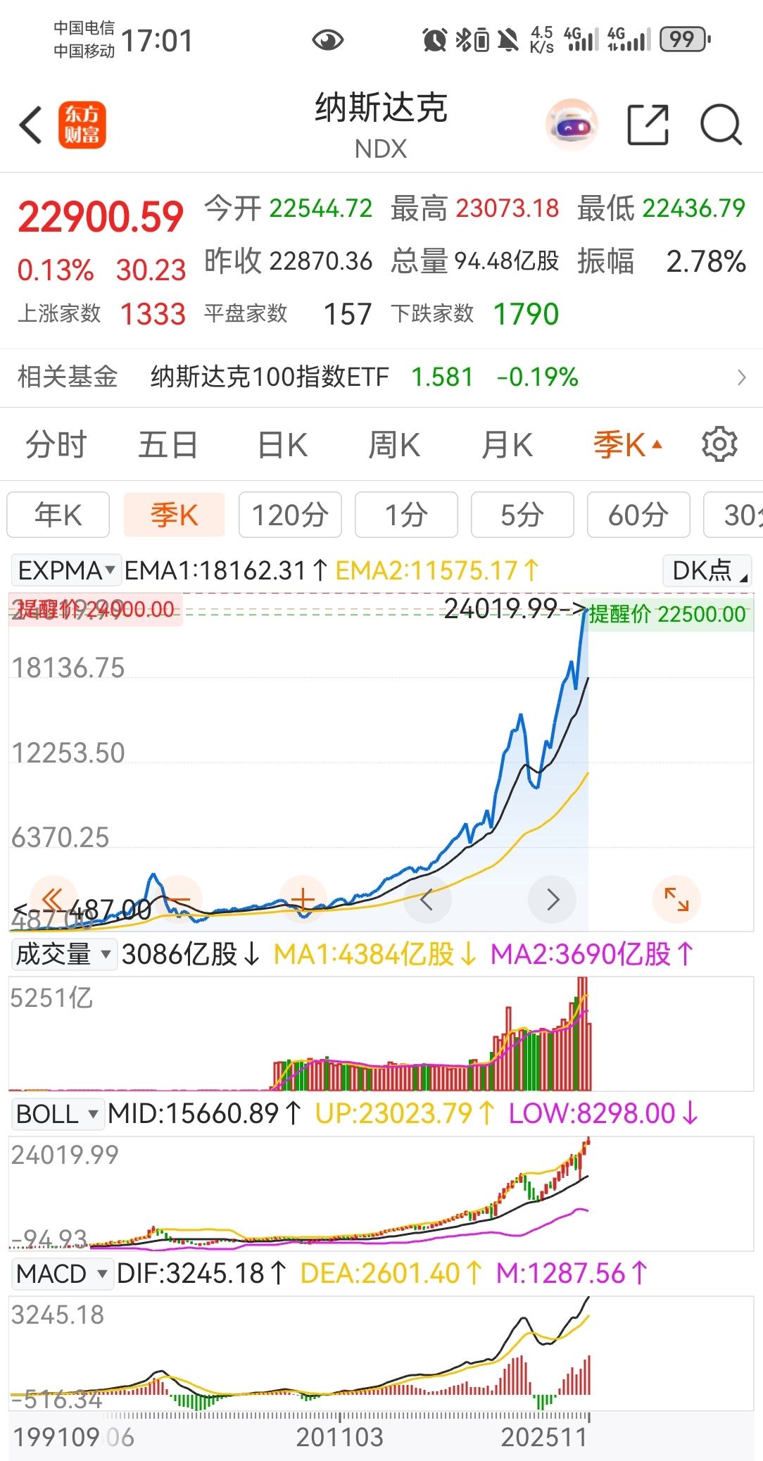 纳斯达克:教科书级别的完美趋势线。鲜明对比如下。