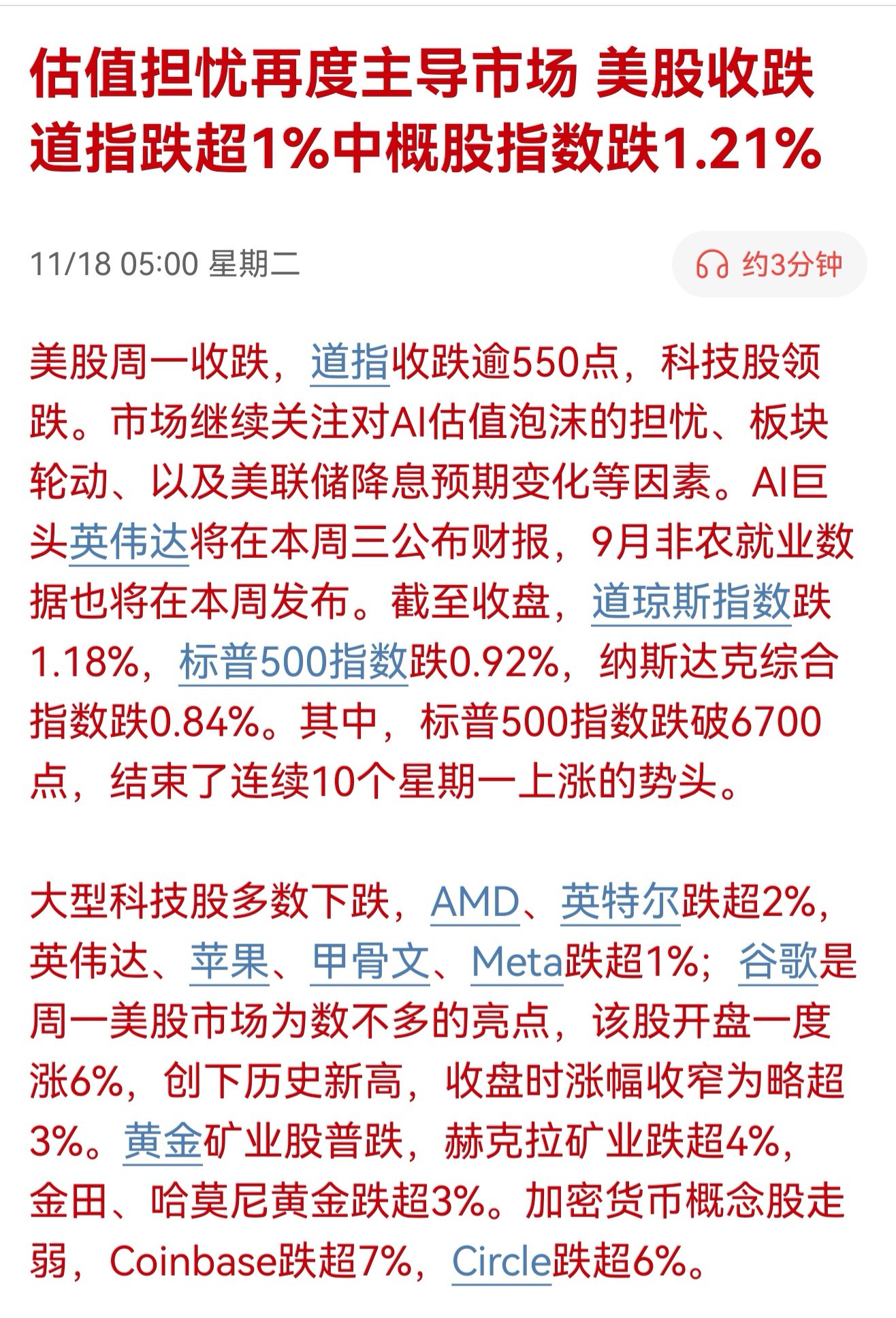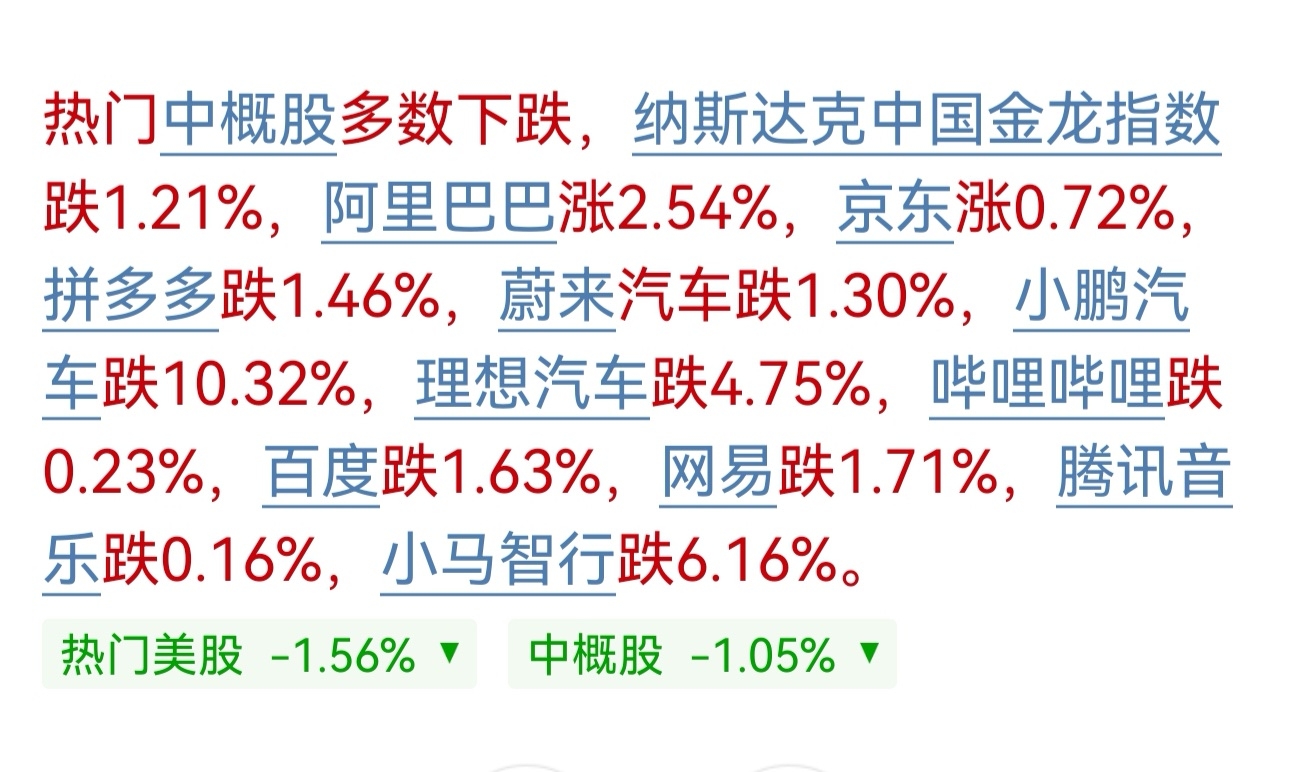 估值担忧再度主导市场美股收跌道指跌超1%中概股指数跌1.21%