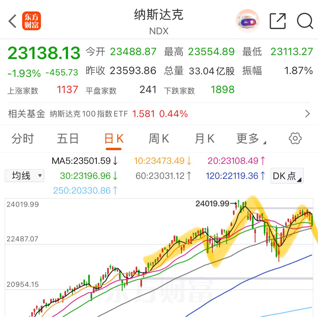 $纳斯达克(QQZS|NDX)$ 标准头肩顶圆弧顶,明年要调整一整年