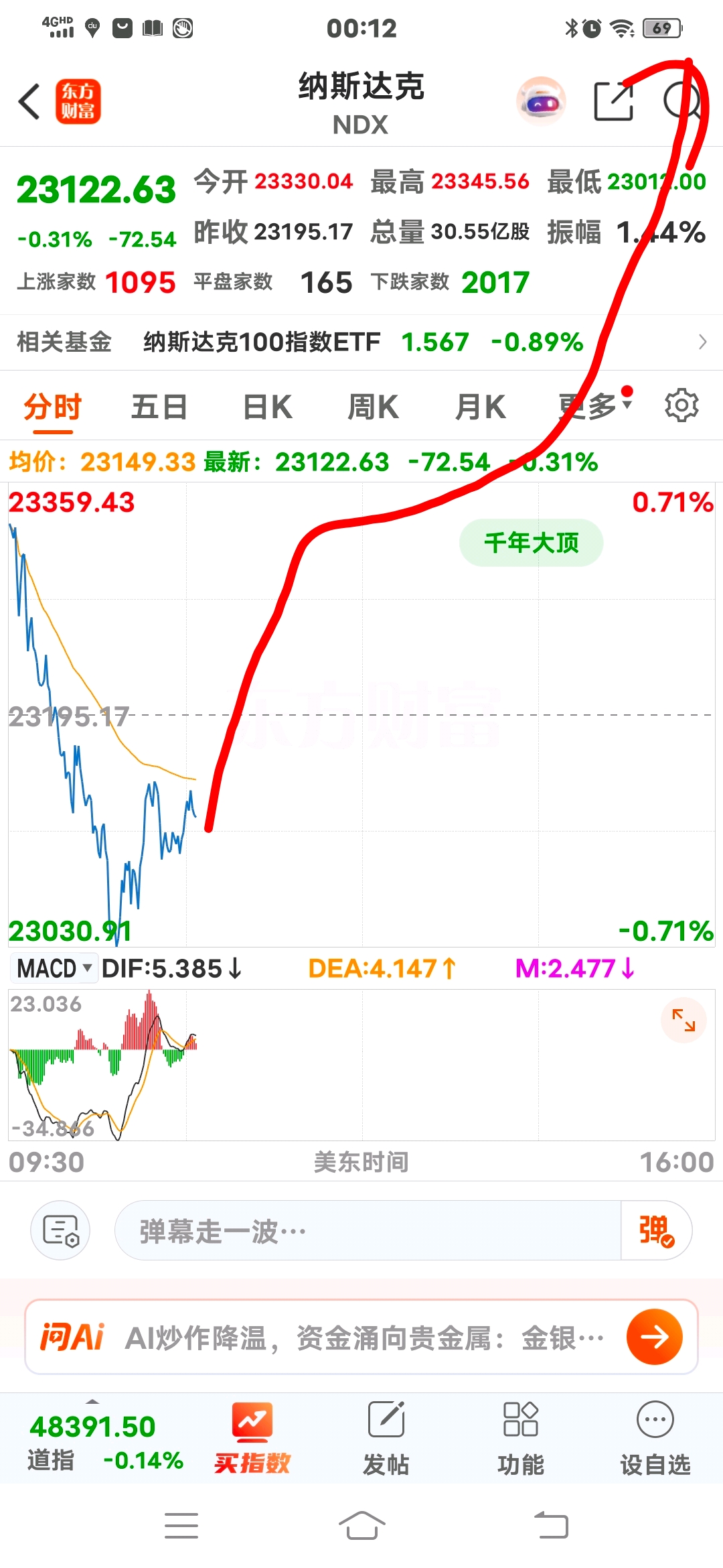 $纳斯达克(QQZS|NDX)$ 收盘必定V起来